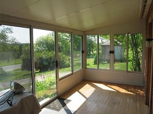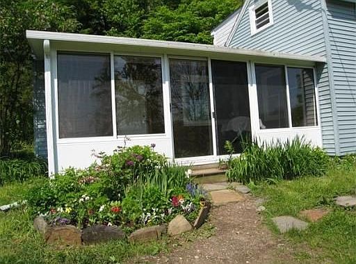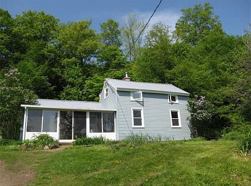 Charming cottage has gorgeous view of protected open land. Remodeled kitchen & bath, replacement windows. Open floor plan in kitchen el with cathedral ceiling, dining & relaxing area. Fireplace in living room set for wood stove. Fabulous 3 season southeast facing porch with view. Room for gardens & animals, high bush blueberries, shed with electricity, great for chickens etc. Nearby trails. Little piece of heaven for a very a small price. Eligible for FHA or Rural housing loan, move in condition