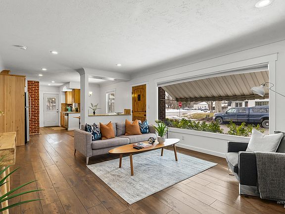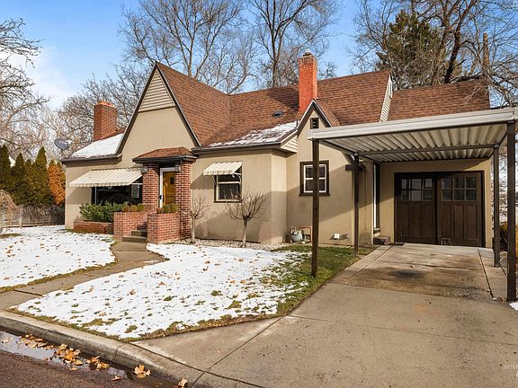 The Perfect Boise Bench location combines with the charm of the 1930’s era Bungalow in this fantastic 1,287 s.f. home just minutes from downtown! Design cues taken from the English Cottage style present a welcoming curb appeal highlighted by steep pitched roof accents, brick planters, large picture window, & knotty alder entry door. Inside, you are greeted by large open spaces & ample daylighting. Coved ceilings of the period soften the ceilings while the travertine finished fireplace enhances the cozy feel. The kitchen is open and functional w/ granite counters, tile backsplash, & an absolutely gorgeous exposed brick chimney! The bedrooms are well sized with built in cabinetry, & the updated bathroom suits the home perfectly w/ quartz c-tops on the vanity, travertine tile flooring, & fully tiled shower. Location is more than ideal – easy access to downtown, I-84, Boise Airport, Ann Morrison Park, BSU, & just about everything Boise has to offer! Homes like this are rarely available.