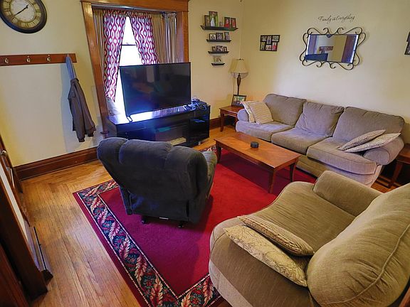 RE-VAMPED BUT WITH A VINTAGE VIBE! This 3-4 bed/2 bath home has had it's classic structure restored & re-vamped inside & out but not without preserving it's charming characteristics. Original hardwood floors, stately pocket-doors, cupboard & window-seat built-ins, & the ornately carved wood mantle & ceramic heat flue adorn the home's interior. With the 'vintage' you get the 're-vamped' in the updated kitchen and bathrooms, 200 amp electrical,vinyl siding & soffits, 2010 roof, 2013 furnace/water heater as well as home's re-insulation in 2013; just some of the many updates. The main floor bedroom has been previously used as a den/family room which can open up to the living room via the XL pocket doors if desired. Tidy basement with laundry and utility sink plus upper 'mud-room-porch' offer convenient additional space. No shortage of "space" outside via the wrap-around front porch, backyard covered patio, & the 13 x 24 garage with a second story perfectly set up for easy storage, a man-cave, play-room, or for your personal plan and preference! Great home and opportunity for a "vintage" good deal!