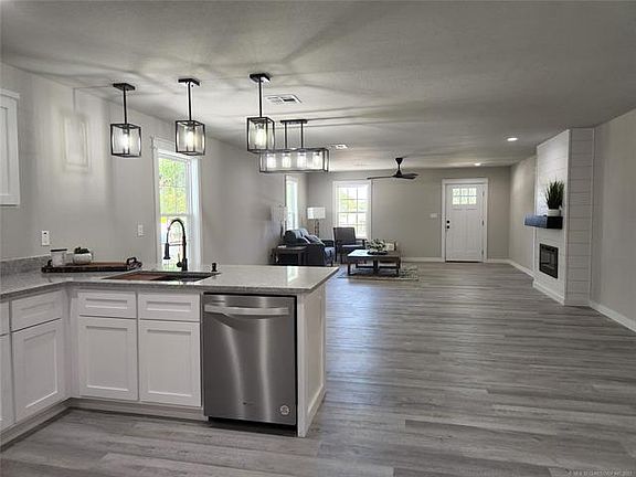 Coming soon. No showings or offers until 9/6/2022. NEW CONSTRUCTION, finished and ready to move in! This home offers a ton of space the moment you walk in this 3 bedroom, 2 bath beauty. Spacious living/dining/kitchen and stylish granite throughout. Huge SS sink for the at home chef with cutting board & roll out drain board. Black & stainless appliances. Shaker style cabinets and lots of counter space. Bar seating. Master has double closets and gorgeous master bath with tiled surround, double vanity and hi-tech mirror with heat and variable lighting. Bedrooms are carpeted for comfort. Second bath also has tiled surround and hi-tech mirror. Separate laundry room and 1 car garage. Concrete walk connects front porch all the way around to back patio. Foam insulation makes this a very energy efficient home.