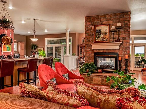 The BEST of both worlds merge with California style living in the Rocky Mountains with a heated salt water pool, 10 person hot tub, pool house - studio style, built in grill. Sets on a hill with 360 degree million dollar mountain views. More ammenities that can list! 10' ceilings, walk out basement 2 additional rooms one used as office the other as a weight room will mirrored wall. Home theatre, wet bar/pool/family room. Entry foyer 17'x36' wood floor with tile inset. Three car detached garage is heated, has a room above for man cave, it has room to park a boat or RV