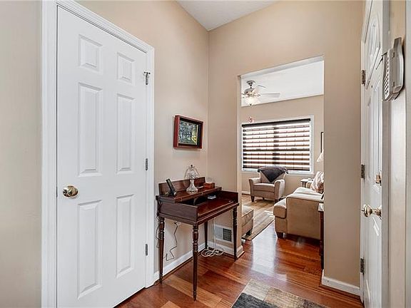 Enjoy maintenance-free living in this beautifully appointed patio home featuring tons of upgrades. A welcoming entry leads to the living room with a vaulted ceiling, corner gas fireplace and palladium window providing soft natural light to the first floor living space. The open concept living room and dining room with stunning hardwood floors flow nicely into the beautiful kitchen with maple cabinetry, great counter space and tile flooring- perfect for everyday living as well as entertaining. First floor master ensuite with custom darkening shades includes a walk-in closet and fabulous fully renovated bath. Ascend the hardwood stairs to the expansive second level with a large living space, full bath plus bonus room which could easily be a second master, guest suite or family room. First floor laundry, large pantry, den (third bedroom) with custom blinds, tons of storage space and so much more make this home a total charmer!