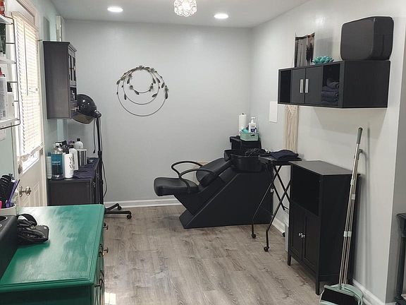 Beautiful 3 finished level townhome near Winchester. Move in ready and like new with new carpet and paint. Lower level has a one car garage with metal shelving, entry foyer with closet and a bonus room with a finished personal hair salon with sink. Fenced back yard. Kitchen has a double oven, island and open floor plan. Spacious living room. Shelves and new blinds in closet convey. Primary bedroom with attached full bathroom and walk in closet. Hall laundry closet with washer and dryer. Hall bath with linen shelf. The electric lawn mower is perfect for the backyard and conveys. A wonderful home