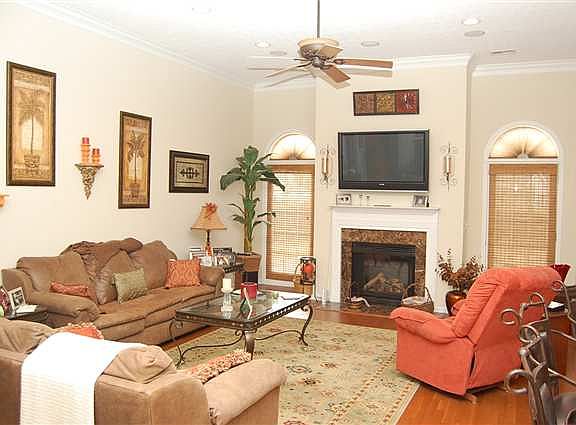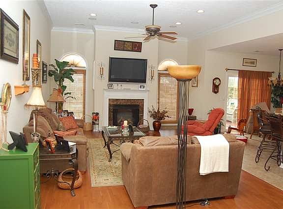 The cream on the crop completely upgraded four bedroom home situated on one of the largest lots in the neighborhood. This stone front beauty features wood flooring in living area and tile in kitchen and baths. The gourmet kitchen features Zodiaq stone countertops, stainless steel appliances, insta hot faucet, eat in bar & upgraded cabinets. Living area features gas fireplace, hidden electronic storage, custom surround sound inside and out, and dramatic foyer with custom and recessed lighting. Master suites boasts double vanity sinks, separate make up vanity, stand up shower and spacious walk in closet. Bonus room/fourth bedroom features a half bath and would be perfect for office or game room. Professionally landscaped lawn with irrigation, privacy shrubs, custom built arbor/bridge, extra large Trex deck and automatic retractable awnings. Put this one on your list as a must see!