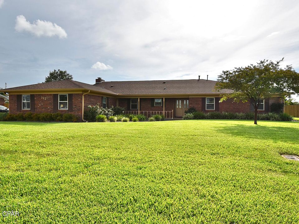 The kitchen has an abundance of cabinets and is equipped with essential appliances to include a refrigerator. The home also comes with a washer and dryer. The large den offers a fire place and french doors leading to the screened-in back patio. You have a view of the beautiful backyard from the living and dining room. The master bedroom has double closets and french door allowing access to the sunroom. The sunroom presents a perfect spot to unwind and soak up natural light, while the screened patio invites you to enjoy cool breezes and fresh air with a view of the peaceful backyard. The spacious garage provides cabinets and a second refrigerator, as well as an adjoining storage/utility room with additonal cabinets to store your tools or to utilize as holiday decoration storage. Positioned centrally between Mexico Beach and Panama City Beach and just minutes from Tyndall Air Force Base, this property is ideally located for convenience and leisure. With no HOA restrictions, this home offers the freedom to make it truly your own. Don't miss the opportunity to own this well-loved, meticulously cared-for gem.