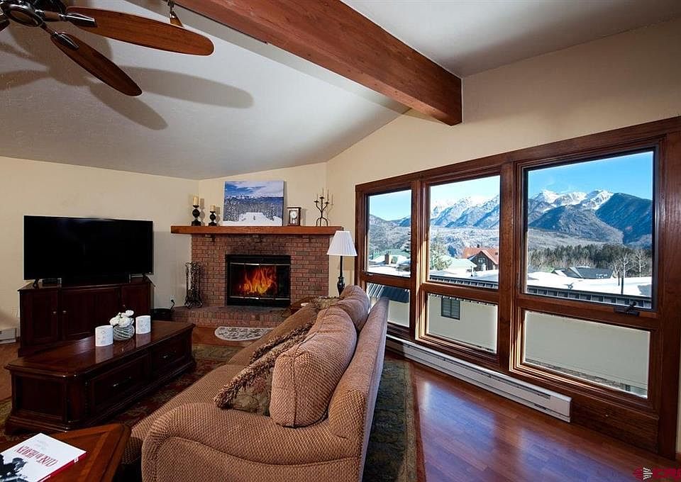 Beautiful slope side condo at Purgatory Resort with amazing views and private brand new sauna! This spacious and bright 4BR/3.5BA condominium features a huge deck that backs right up to the slopes for instant access to and from the mountain. Fully remodeled from top to bottom in 2007 with many more recent upgrades including the addition of the large private sauna room. The main level has a very open great room with vaulted ceilings and huge windows to take in the awesome views of the Needle Mountains. The kitchen has solid granite countertops, custom cherry cabinets and all new appliances. The entire great room features beautiful laminate wood flooring and there is a big brick corner fireplace to relax in front of while enjoying a glass of wine for apre-ski. The large primary bedroom is right off the great room and features a beautiful ensuite bathroom. You can comfortably store all your gear in the ample mud room complete with ski racks and boot warmer/dryers. The massive deck provides ultimate privacy and direct access to the mountain for skiing or mountain biking. This really feels like your own backyard and is an incredibly rare feature at the resort - perfect for the kids and grand kids to play or walk the dogs year round. The mid level of the home has two bedrooms, one with double bunk beds, a full bathroom and washer and dryer. The entry level has another bedroom, recently remodeled bathroom and the brand new private sauna room. There is also a large storage room for all of your toys and gear. This property comes completely furnished and ready to go for new owners to immediately enjoy. You simply won't find a better buy in a ski-in/ski-out condominium! This property is also part of the Durango Mountain Master Association so you can enjoy all the amenities at the base area including, year round heated pool and hot tub, fitness facility, spa, game room, private owners lounge/bar/restaurant, tennis courts as well as discounts to shops restaurants and various other on mountain services. Assessor records do not reflect the additional square footage in the added downstairs sauna and storage room. Buyers should verify the total square footage to their satisfaction.