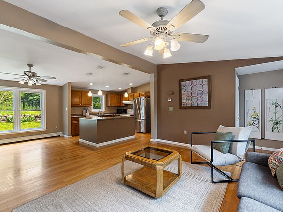 Open concept three bedroom home with two baths on a quiet street in Waltham. You feel like you are one with nature. Great sunroom and fenced-in yard for your pet if you choose to bring one. The kitchen has lots of storage and a big island, with room for a kitchen table. Nice great room with high ceilings. Two bedrooms on this level with a bath. Downstairs, a third bedroom, mudroom from carport, family room and full bathroom. One mini split on each floor. Last house on a 1/4 mile private dead end road surrounded by many acres of conservation land. Very private and quiet. Large paved play area with basketball hoop. All of this with the convenience of being close to the highways and not too far from downtown Waltham with all it's great restaurants. Rent Fee Includes: Water, Sewerage Disposal. Tenant responsible for all other utilities