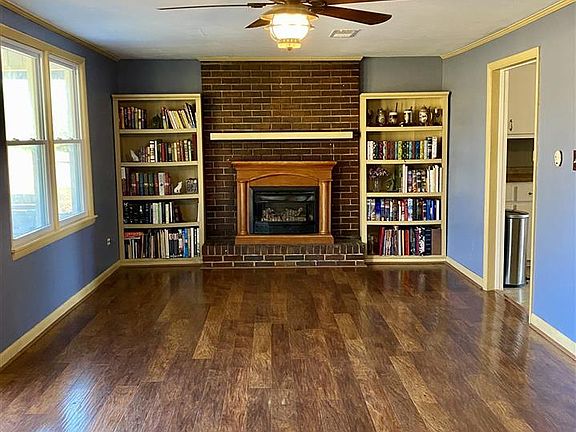 This cute 2 bedroom country house has been completely renovated! Tile backsplash added in the kitchen, fresh paint, new vinyl flooring, hardwoods in living room, updated lights, added crown molding, and a fenced in yard! This house is on a corner lot, has a storage shed, and a tornado shelter! Two car garage and a covered patio out back! The freezer in the garage conveys at no cost, and the house has a Tankless water heater. The master bedroom is very spacious with an 11x6 ft closet. Enjoy updates throughout this great home! Garage window unit does not convey with the house, and wall heaters are sold as is.