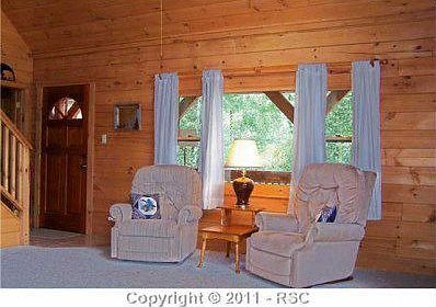 True Log Home nestled on 10 Private Wooded Acres with Outstanding Pikes Peak Views, Dramatic Rock Outcroppings & a variety of Trees. Cozy vaulted wood beamed ceilings & log interior create the perfect mountain getaway atmosphere. Enjoy watching the abundant wildlife & mountain views from the wraparound porch or venture out to World Class Fishing and Nat'l Forest Trails & Parks just minutes away. Excellent condition inside & out! Heated oversized garage, workshop & storage shed too. A Sweet Retreat!