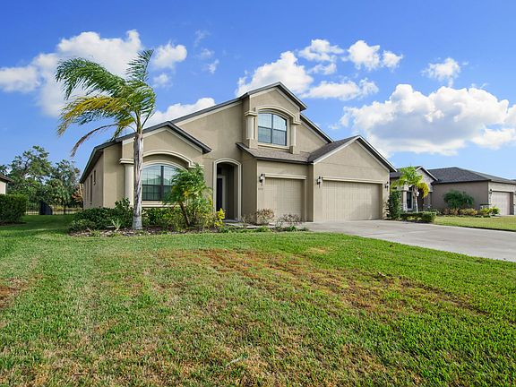 LOOKING FOR A HOME ON OVER A QUARTER OF AN ACRE FENCED? THIS MAY BE THE HOME FOR YOU. THE SUAREZ WAVERLY FLOOR PLAN. SITUATED ON A POND/CONSERVATION LOT. 4 BEDROOMS, 3 FULL BATHS, WITH AN OWNER'S RETREAT. EXTENDED DRIVEWAY. COACH LIGHTS COMPLEMENT THE THREE CAR GARAGE. BONUS ROOM LOCATED OVER GARAGE. THE ENTIRE DOWNSTAIRS ACCEPT FOR THE BEDROOMS IS CERAMIC TILE LAID ON A STAGGERED PATTERN. 4 BEDROOM HAS IT'S OWN PRIVATE BATHROOM. FORMAL DINING ROOM WITH COLUMNS & TRAY CEILING. THE GOURMET KITCHEN HAS LOTS OF CABINETS, STAINLESS STEEL APPLIANCES, WINE REFRIGERATOR, GRANITE COUNTER TOPS, KITCHEN ISLAND AND BUFFET COUNTER TOP ( IN BREAKFAST NOOK), 42" HIGH-END CABINETS WITH CROWN MOLDING AND STAINLESS STEEL HARDWARE, BUILT IN MICROWAVE IN KITCHEN, LAUNDRY ROOM OF OFF KITCHEN. 8' DOORWAYS WITH 12' CEILINGS. ABOVE AVERAGE ( LARGE) MASTER BEDROOM. MASTER BATH HAS DOUBLE SINKS, GRANITE COUNTER TOPS, WALK IN SHOWER AND SOAKING GARDEN TUB. HOME IS PREWIRED FOR SECURITY SYSTEM AND SURROUND SOUND-5 SPEAKER DROPS IN BONUS ROOM, 5 IN LIVING ROOM, 2 IN MASTER BEDROOM, 2 ON LANAI AND 2 IN GARAGE. IRRIGATION SYSTEM THROUGHOUT YARD. SLIDING GLASS DOORS OFF OF GREAT ROOM TO SCREENED IN LANAI. BLACK WROUGHT IRON FENCED YARD. AMAZING SUNSETS FROM THE BACKYARD AND LANAI. COMMUNITY POOL AND COMMUNITY FITNESS CENTER. CDD IS INCLUDED IN PROPERTY TAXES. RECLAIMED WATER IS CURRENTLY BEING INSTALLED IN THE COMMUNITY. EASY COMMUTE TO MACDILL AFB & INTERSTATE 75. RESTAURANTS AND SHOPPING RIGHT OUTSIDE THE ENTRANCE TO THE COMMUNITY.