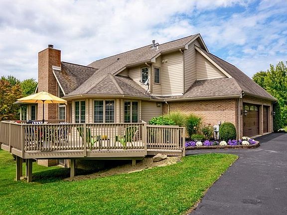 Natural beauty & peace surround this ALL BRICK custom built home on 7.5 ACRES located in MARS SCHOOLS. Enjoy breathtaking views inside and out! Completely renovated OPEN-FLOW floorpan. Highlights include dream-come-true GOURMET KITCHEN with all the finest details and upgrades. Great Room with valued ceiling and dramatic floor-to-ceiling stone fireplace. FIRST FLOOR MASTER suite with spa-like bath. Every bedroom has it's own full bathroom! MAIN FLOOR LAUNDRY! Lower Level walk-out is fully finished and spacious. 6-CAR GARAGE (3 attached/3 detached). Detached garage is heated plus electricity - ideal for workshop! Outdoor living perfect for entertaining - basketball court, plenty of parking, fire pit, plus rolling acres of apple & pear orchards! LOW BUTLER TAXES. Convenient location to Cranberry I-79 / PA Turnpike - easy access to PITTSBURGH.