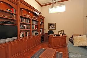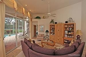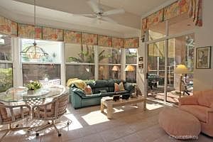 Move in! An impeccable home on a lovely garden lot with an extra side yard! New low cost, high efficiency A/C, new microwave and washer, decorative tile backsplash, office custom built in plus wood floor, sun blinds on all windows, master bath Jacuzzi, electric awning over the pool and spa, sunscreen awning for lanai, natural gas grill.