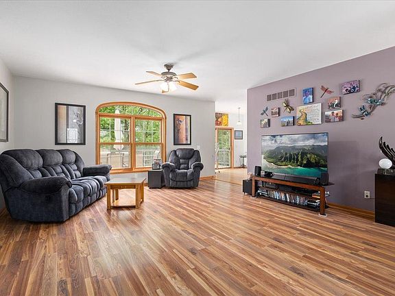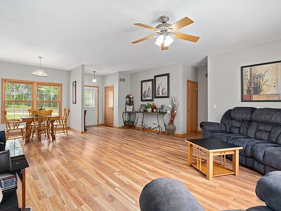 This rambler, perched high above the beautiful Plum City is a must see! This home as all the space one could want, with room to finish additional space as desired. Three bedrooms on the main level with laundry make this home great for one-level living but also has expansive spaces and an additional bedroom downstairs. Check out the primary suite has a big soaker tub, walk-in shower and ample closet space. This home has had many updates the last few years including a beautiful new metal roof, vinyl siding, landscaping, flooring and more! Relax out on the expansive west-facing deck and oversee the large yard and beautiful, mature trees. In the morning, coffee on the front porch facing east makes for a great way to start the day. Book your showing today as this home in person is even better than photos or a listing can describe!