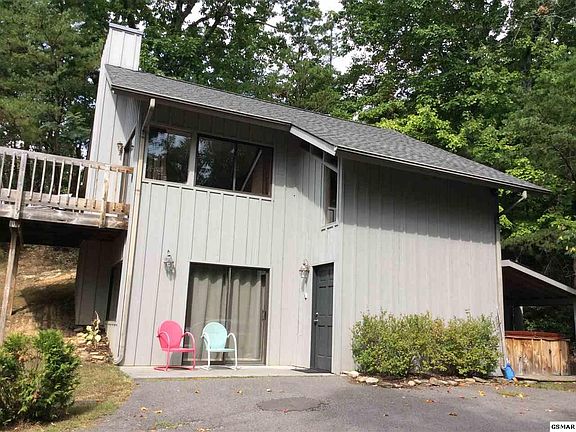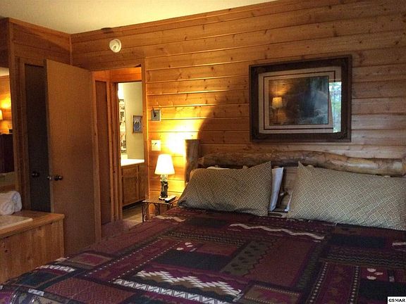 Convenient location in Gatlinburg, with rental history! This two story, two bedroom, two bath, home offers an easy access driveway with plenty of room to park, and plenty of room to play outdoors. With a picnic table, grill, and hot tub, all close together, it's easy to converse while enjoying the variety of outdoor activities. The bedrooms are on the ground level, while the kitchen, living room with wood-burning fireplace, dining area, and a bathroom are upstairs. A sliding glass door just off of the living room offers a view of the downtown Gatlinburg city lights. Another private patio is just off of the kitchen where you may dine with the starry skies, or enjoy your morning coffee in the morning mountain air.