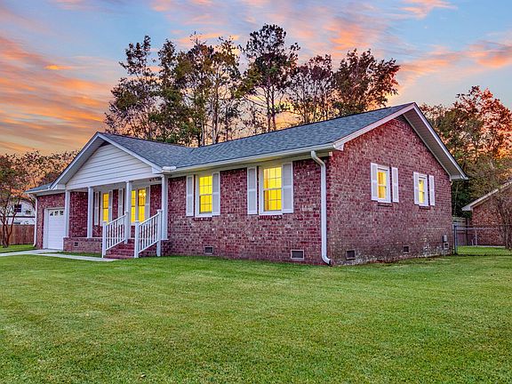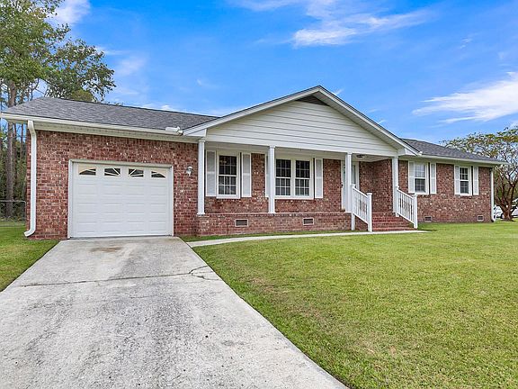 This charming brick ranch home is nestled on a large corner lot in an established neighborhood. A nice front porch welcomes you home. As you enter, you're greeted by laminate wood floors, smooth ceilings, and a spacious floor plan with a great flow for entertaining and everyday living. The dining room will be perfect for dinners with family and friends. The eat-in kitchen Corian countertops, as well as ample cabinet and counter space. The spacious master bedroom features a private en suite bathroom with a large walk-in shower. The rest of the bedrooms are also spacious in size. The bonus room over the garage could be made into a 4th bedroom or it would also make an excellent game room, entertainment room, or home office.The covered patio and large partially-fenced backyard will be perfect for grilling out, entertaining, or watching the kids and/or pets play. Conveniently located near shopping, dining, the interstate, and Stratford High School. It's also just a short drive to Summerville and Goose Creek. Come see your new home, today!
