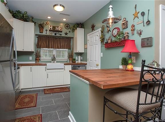 This end unit townhome features an updated kitchen with updated kitchen cabinets, butcher block counter tops, tile backsplash, slate tile floors, stainless steel appliances, farm sink, and a breakfast bar. Seller just installed new laminate wood flooring in the dining room and living room. New Ceiling Fan in the living room and new light fixture in the dining room. The living room features vaulted ceilings. This unit features a downstairs master bedroom suite with a large walk in closet and dual vanity sink in the master bath. The upstairs secondary bedrooms are spacious with a spacious secondary bathroom with dual a vanity sink. Private 10x13 Patio in back. Attached one car garage with an insulated garage door. The HVAC unit was replaced in 2016 and the roof was replaced in 2018.