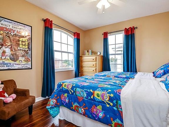 Spacious home minutes to Disney World. Makes the prefect vacation home. Used mostly for private use and some guests this home is in great shape and MOVE-IN READY. A 5 Bedroom 4 bath homes comes with 2 MASTER SUITES which feature IN-SUITE BATHS. Located in a GATED community that is five minutes (to ten) from DISNEY WORLD - you can reach the park with out encountering the traffic of the I-4 or the 192. The POOL features a covered lanai and large brick pavers that require limited maintenance. The spacious pool looks out over to the Disney parks where at night you can hear and see the fire works nightly. The AC has been recently upgraded along with the water heater. ALL APPLIANCES and FURNITURE are included (red rose rug in living room, vintage disney posters in 2nd floor hallway do not convey). *HOA fees, Room Dimensions should be independently verified.