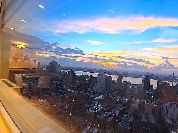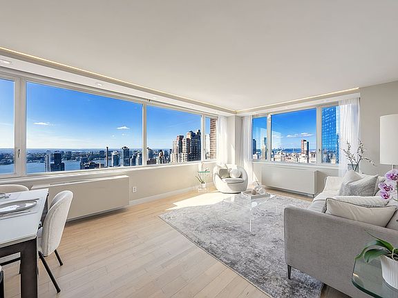 This rare corner 3-bedroom, 2-bath residence at The Sheffield blends sweeping skyline views, a refined redesign, and a coveted Midtown West location. Perched high above Manhattan, the home showcases panoramic Hudson River sunsets to the west and dramatic Central Park vistas to the north.