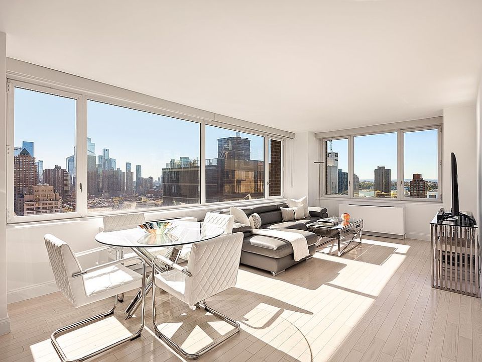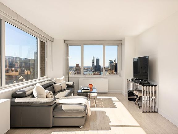 Perched on the 30th floor of one of Manhattan's premier luxury condominiums, this sun-drenched corner two-bedroom, two-bathroom home boasts panoramic southern and western exposures, showcasing sweeping views of Downtown Manhattan and the Hudson River - including breathtaking sunsets right outside your windows.