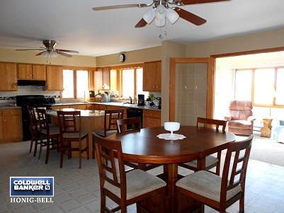 Pride of ownership abounds in this beautiful 5BR, 3BA, 2-story brick home on 3/4+ acre. Located in town, but has the space & feel of the country. Approx 3,000 sq ft of living space & 3.5 car heated det garage w/shop area & NEW roof. Main level: LR w/natural frpl & hdwd floors, Den, lovely remodeled Eat-in KIT, newer Family Rm w/skylights, 2BRs & NEW bath. Upstairs: MBR + 2BRs & full bath. NEWLY finished Lower Level: 29x23 Rec Rm w/wet bar, exercise rm, full bath, laundry & storage. Newer windows throughout. Home Warr.