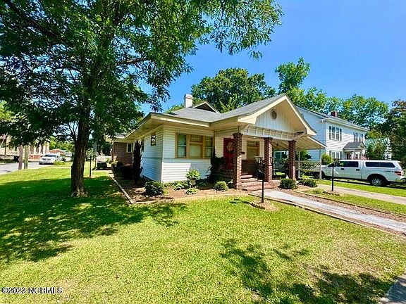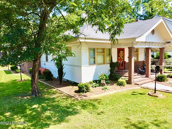 Charming Craftsman bungalow built in the early 1900's. Said to have been a Sears house, it resembles ''the Argyle'' a Craftsman that was advertised between 1916 and 1926 as a ''neat bungalow whose exterior appearance suggests extra-fine interior arrangement an d furnishings'' (According to Martin Architectural Heritage.) This cute house with over 1500 square feet is located in downtown Williamston and it is in a very walkable area. Near some of the best fried chicken in the county with chocolate milkshakes etc. too. Shopping, the post office and Martin Memorial Library are within 2-3 blocks also. Fitted with covered parking on the front and the back. There is also a wide ramp for easy access. Upon entering the front door, note the asymmetrically arranged living room features a ''bookcase colonnade'' that joins the living and dining rooms. A large dining room table fits well in formal dining room which opens into kitchen/ den area. Some of furniture might be available to next owner.