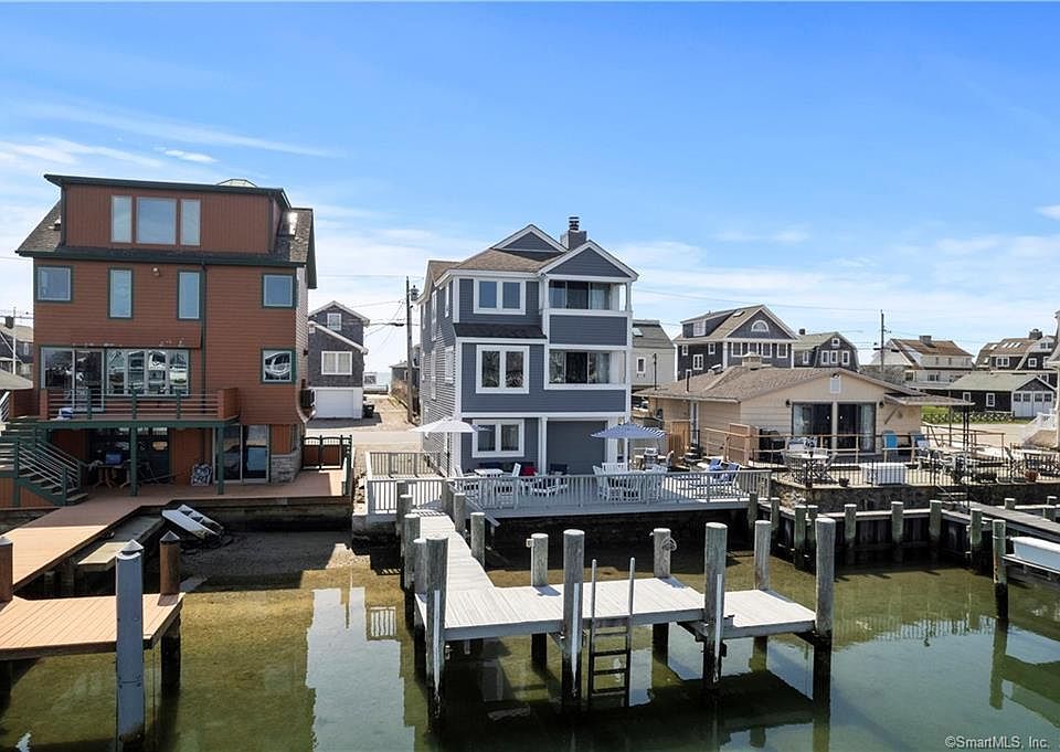 Welcome to your waterfront dream home! This stunning contemporary house boasts breathtaking water views and a private dock, making it a boaters paradise. With 3 bedrooms, 2.5 baths, and beautiful hardwood floors throughout this home is move-in ready and perfect for modern living. The spacious and airy living area is flooded with natural light and offers stunning views. The open floor plan seamlessly flows from the living room to the dining area and recently remodeled (2021) kitchen featuring black quartz countertops and stainless steel appliances. The main level also features two balconies with views of both Main Beach and Venetian Harbor. Upstairs there are three bedrooms and 2 full baths, along with the laundry. The Primary bedroom has a lovely balcony with views of Venetian Harbor, Mumford Cove, Bluff Point and beyond. Enjoy the outdoors on the extra large fully fenced 39.5 x 24.11 deck. This wonderful outdoor living space offers multiple areas for both lounging, dining and sunbathing. There is also a 8.9 x 10.7 bonus room on the lower level perfect for an office, tv/game room or exercise room. The 21.10 x 29.9 dock has water and electricity. The garage, a plus in GLP and can be used to store bikes and beach toys galore. This home is being sold furnished less personal items, don't miss an opportunity to live in this beautiful waterfront home with a dock! Call today for a showing.