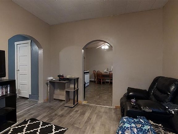 This charm-filled 3 bedroom, 1 bath is ready for you to make your own or add to your investment portfolio! The inviting covered front porch welcomes you home before you head inside to find beautiful low-maintenance flooring and classic arched openings in the living room. The spacious eat-in kitchen offers lots of storage space with solid oak cabinetry as well as good working counter space. You'll find two good-sized bedrooms and the shared full bath with jetted tub off the kitchen. The third bedroom. which could also be used as an office or additional living space, is off the living room. Looking for more? The full unfinished basement is perfect for your storage needs! Outside, the large backyard provides the perfect place to take in all the gorgeous sunshine! Currently rented through January 2023 at $700/mo. Take a look at this one today!!