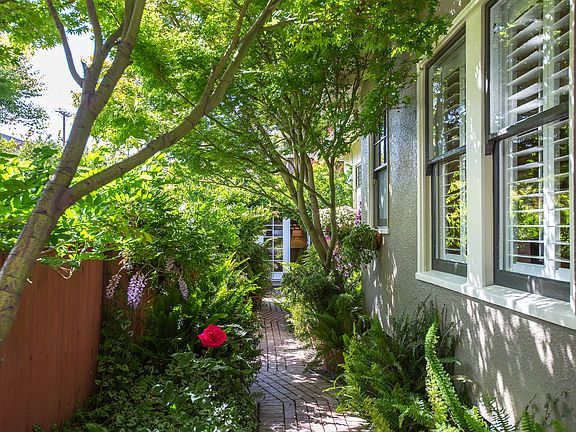 Located on an idyllic block in the East End of Alameda, this tranquil home is ready for new owners to make it their own. Feel the calm wash over you as you step onto the gracious front porch and take in the harmonious tree-lined street. This meticulously maintained Classic Craftsman has been updated with many of today's modern conveniences. Coupled with its architectural beauty, this home features everything you have been waiting for. The beauty offers a sense of style and space with its open floor plans and multiple period details, and the flow from the living room, dining room and kitchen offers exceptional entertainment space. Enjoy the elegance of the professionally landscaped yard that provided a picturesque setting for the union of this home's current owners, Kevin and Carmen! The outdoor space has hosted many enjoyable evenings around the fire pit, gazing at the starlit sky. The detached office/studio with two sets of French doors has been a place of relaxation for many. This lovely home is centrally located and convenient to everything you are looking for on the island of Alameda.   INTERIOR HIGHLIGHTS -Two bedrooms, one bathroom -1055 square feet per appraisal -Hardwood floors throughout -Living room with built-ins and decorative fireplace -Updated kitchen -Separate dining room with built-ins -Period details -Separate laundry room   EXTERIOR HIGHLIGHTS -Stunning drought-friendly, professionally designed & landscaped yard -Firepit -270 square foot studio/office space with two sets of French doors (per appraisal) -Generous front porch -Driveway with room for multiple cars -New deck (2016)   NOTEWORTHY UPDATES -Updated plumbing -Earthquake retrofitting -Gas and sewer lateral compliance