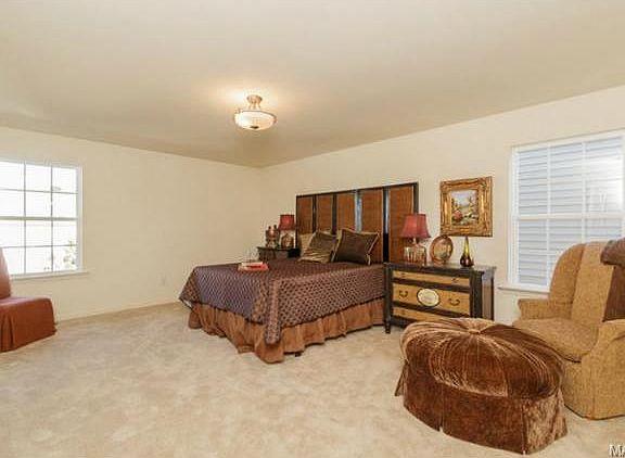 DISPLAY HOME FOR SALE! This 3 bedroom, 2.5 bath, 2 story has 2,468 square feet, 9 foot ceilings, popular side staircase design, hardwood floors, open Great Room-Breakfast Room-Kitchen living area, Formal Dining Room-Living Room, large walk in closet in the Master Suite, white 2 panel doors, 50 gallon water heater, stainless steel Whirlpool appliances, Kitchen island, satin nickel door hardware and lighting, window grids throughout, R 38 ceiling insulation, Trane energy efficient furnace and13 SEER AC, decorative iron mailbox,10 year builder warranty, pest shield control system, rough in bath and more. The exterior is low maintenance with vinyl siding, enclosed fascia-soffits, 30 year architectural shingles, partial brick, full yard sod, irrigation system and landscape. Enjoy community amenities including a lake, pocket parks, playground and an inviting waterside pavilion. With easy access to Highways 370 and 94, this community is located minutes from Historic Main Street in St. Charles and Lambert International Airport.