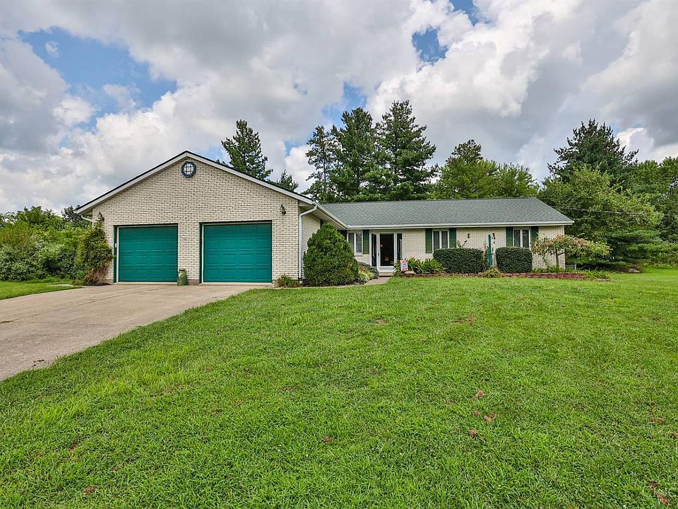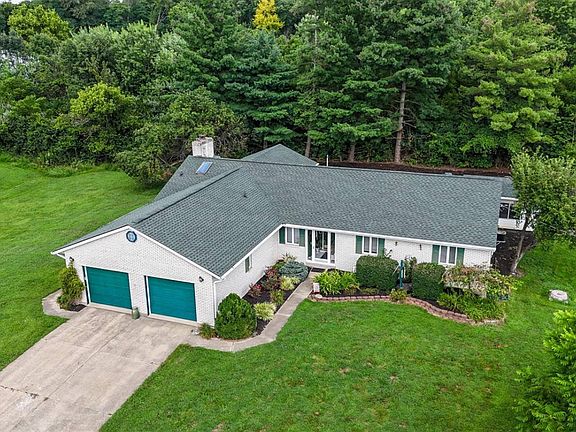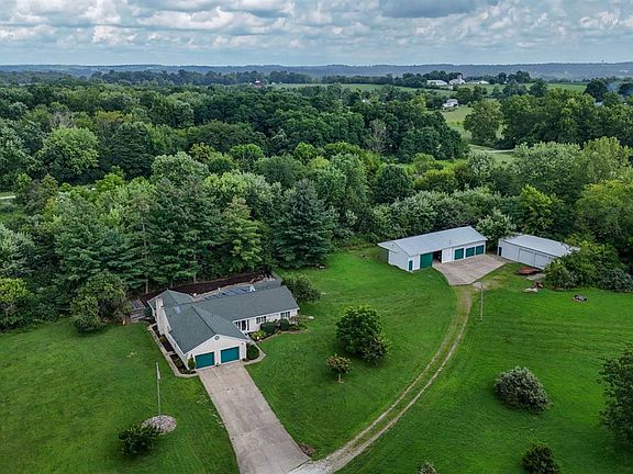 Spacious Custom Built Ranch on gorgeous 5.48 Acre private setting-Open Floor plan-Living room with bay window-Dining room with full brick wood burning fireplace-Eat in Kitchen with 10 ft counter bar and skylight-Anderson casement windows-12"poured foundation-Three Season room off Dining room-Inground pool with pool house-Hobbyist Dream with 2 outbuildings (1) 2190 sq. ft with concrete floor, 220, compressor-25x12 air conditioned work shop with car lift-29x20 paint booth - (2) 1620 sq. ft. pole barn with 3 10 ft. doors- 1y warranty