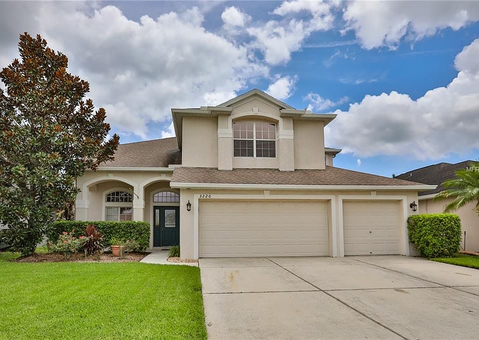This beautiful 5 bedroom 3 bath pool home with 3 car garage backs up to the 10th Tee of the Golf Course in the desirable Plantation palms Gated golf community with NO Cdd Fees. This wonderful home offers great living space with laminate wood floors throughout the main living areas and has a down stairs bedroom with full bath. The kitchen features 42" cabinets, solid surface countertops with integrated kitchen sink, Stainless appliances with French door refrigerator, and decorative glass and stone backsplash. Upstairs you'll find the other secondary bedrooms , a spacious bonus room, and the luxurious Master bedroom suite with a completely remodeled Master bathroom featuring a large walk-in shower with frameless glass, custom cabinetry, granite countertop with double sinks and his and her closets. Heading back downstairs to the amazing outdoor space where you'll find the gorgeous pool & spa that looks out to serene wooded and golf course views. There is also plenty of covered area and pool deck space to enjoy those warm Fl. sunny days. Plantation Palms offers 18 holes of golf, a lighted driving range, a newly renovated clubhouse & pro shop complete with full service restaurant. Also just minutes away is the Land O Lakes Rec Center with tennis, pool, soccer, baseball Great schools, a public library, Malls, restaurants and easy access to the interstates. Call today to schedule your private showing!