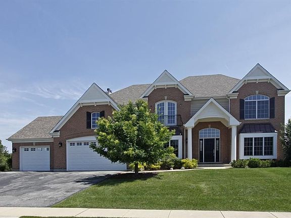 An elegant home just brimming with upgrades!Executive style two story home with brick exterior located in the desirable Fairway View Estates community of Algonquin. A majestic pillared front entrance leads into a two story foyer with open railing. The stunning kitchen includes an island with breakfast bar, stainless steel appliances (range, microwave, dishwasher), quartz countertops, maple 42 cabinets, and a walk-in pantry. An eating area with ceramic flooring is just off the kitchen, an a sunroom with sliding glass doors to the deck is located off of the eating area. Hardwood flooring leads from the kitchen into the formal dining room which features a butlers pantry with sink and a bay window. The cozy family room has a two story ceiling, lots of windows, hardwood flooring, and a fireplace. A formal living room is also included with a bay window.Upstairs youll find four bedrooms, including a master suite with vaulted ceilings and a private bath (whirlpool tub, separate shower, and double vanity). Spacious guest bedrooms, one which includes French doors in lieu of windows.Also included in the home is an unfinished walkout basement with an installed fireplace and sliding glass doors to the backyard almost 2,000 sq ft of extra space! A huge deck overlooks green space and water a wonderful view to see every day. Pella windows are found throughout the home. Located within school district 300 and just minutes to the I-90 corridor.