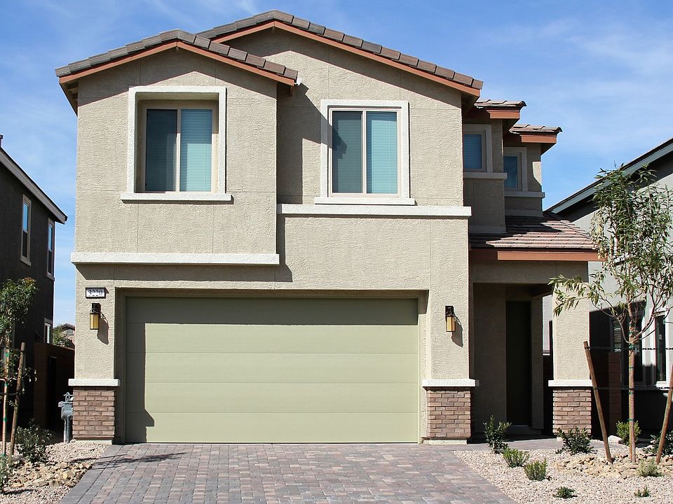 Great Henderson location! Brand new Lennar solar home! Dahlia @ Rose Ridge. Granite countertops, stainless appliances, tile downstairs. Backyard fully landscaped with desert, pavers, covered patio. Playground, community pool.