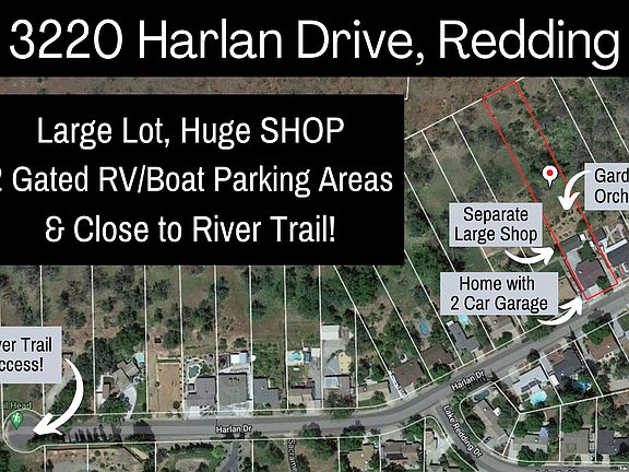 Looking for a home in the back of a subdivision, close to everything with a SHOP & RIVER TRAIL access? This is a nearly impossible combination! Check out this one-of-a-kind Lake Redding home! It has amazing curb appeal with a covered front porch & surrounded by brand new homes. Oversize parking in front & 2 areas of gated RV/boat parking! You'll love the charm inside! Bright white farmhouse kitchen with large pantry & breakfast bar. Vaulted ceilings & exposed beams. LVP/Laminate throughout. This home is simply adorable! The split floorplan creates a very private Owner's Suite & it has a big walk-in closet & slider to the back! Abundance of fruit trees behind shop. 2 car attached garage + 3 car SHOP + carport! If you have toys or projects, this is the house for you! NEWER ROOF!