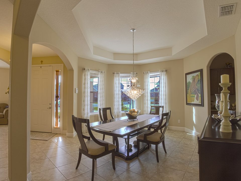 This MOVE-IN ready, gorgeous pool home with pond view has the *LARGE* rooms and *3 CAR GARAGE*. HUGE Kitchen and Breakfast Bar with granite countertops and warrantied stainless steel appliances combined with Family room and dinette in open floor plan. Tray ceilings throughout, including formal dining room with Butler's Pantry and walk-in pantry. Enjoy the privacy of gorgeous, warrantied *SALT WATER POOL* overlooking the pond with wooded view. HOA includes Clubhouse, Community Pool, Playground, Park, Fitness Room, Tennis and Volleyball courts. Enjoy views of Lake Toho from the extensive walking paths throughout the neighborhood and around the lake. The Pond view from HUGE master suite with dual sinks and separate garden tub and shower are stunning. *The Poinciana Sunrail Station Service begins on July 30, 2018 and is a 5-7 minute drive from the property* This immaculate 3/2 - 3 car garage with security system with oversized garage, allows tandem parking.