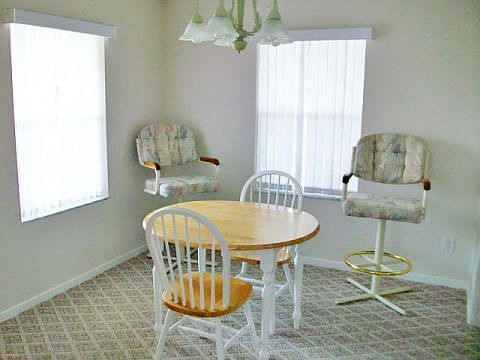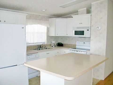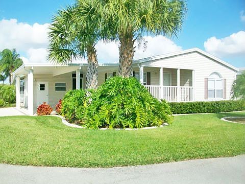 THIS WELL MAINTAINED TWO BEDROOM, TWO BATH WITH A GREAT ENCLOSED LANAI AND COVERED ROCKING CHAIR PORCH IS LOCATED ON A CORNER LOT. SPACIOUS BEDROOMS WITH LARGE CLOSETS AND THE MASTER SUITE HAVING AN ATTACHED BATH. COMBINED KITCHEN AND DINING, LARGE LIVING ROOM AND AN INDOOR LAUNDRY ROOM. PARTLY FURNISHED AND ALL APPLIANCES. GOLF CART GARAGE AND TWO CAR CARPORT. A LIFESTYLE AWAITS YOU IN THIS PREMIER PARK. DON'T MISS THIS SUPER GOOD DEAL. Being sold "As Is" with right of inspection