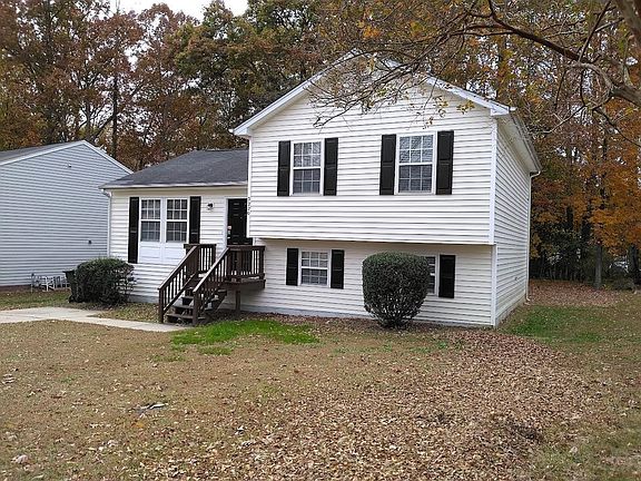 Interior freshly painted, new flooring, kitchen remodeled with new stainless steel appliances, including refrigerator. Lower level has den/family room, utility/laundry room and bedroom. Main level has large living room, separate dining room that opens to deck, kitchen has small area for bistro table. Upper level has owners suite, a secondary bedroom and second full bath. Enjoy grilling out deck overlooking wooded backyard. Convenient to 40, shopping, hospital, and restaurants. Nice flat yard w/wooded backyard.