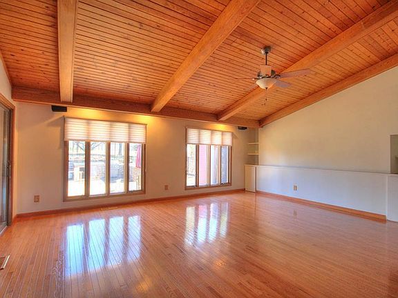 Open door to a sparkling open concept.Soaring cathedral wood ceilings divided by a massive used brick fireplace opening into Great Rm w/ wall of windows overlooking deck and patio with INGROUND POOL, bar and grill. Must see.Hardwood flooring accenting most of the rooms. Beautiful open windowed formal dining rm. Enormous windowed family room has wood ceilings and sliders to pool area. Equipped kitchen w/stainless appliances. Master bedroom,cathedral beamed ceilings 10x8 walk-in closet.Master bath skylights, whirlpool tub door leading to a sauna hot tub rm w/brick floor also overlooking the pool. The garage could hold 4 cars. The property is on 1.02 Acres. Property has 2 Geo-thermo systems with Solar panels making utilities from $100 per month depending on family size. This is a must see. So much more.