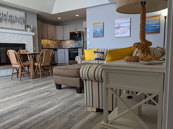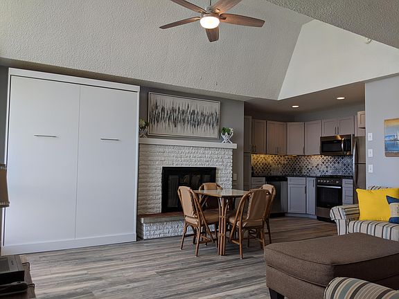 This fully remodeled second floor, 1-bedroom, 2-full bath waterfront condominium offers 340 feet of shared sandy shoreline on Crooked Lake. The Inland House is ideally located on 131 across from the Little Traverse Wheelway bike path and a short distance from Petoskey, Harbor Springs and Mackinaw City. This 650 sq foot unit sleeps 6 and has been completely remodeled floor to ceiling, including: a fully equipped kitchen and appliances, two new bathrooms, flooring, and paint. One room with a vaulted ceiling has a new queen size murphy bed that sleeps 2 guests while the other room has a queen size bed and a twin trundle bed. The full kitchen has everything you may need including granite countertops, refrigerator, stove, oven, microwave, dishwasher, toaster, single-serve Keurig and K-pods, pots and pans, and dishes/glassware. Two Cable TV's and high speed Internet/WiFi are included. The Inland House includes on-site coin washer and dryer, a community gas grill, tables and chairs in the common area courtyard, and a fire pit. It offers parking for guests and an elevator to the second floor unit if needed. Trash, gas, cable TV, Wireless Internet and water are owner's responsibility. Electric is Renter's responsibility. During coldest months electric might reach $300. No pets and no smoking are allowed. Plenty of parking available. Property is available to rent beginning of October and ends end of May.