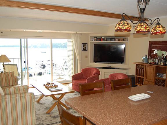 Wow, this is a great corner unit, on the upper level, elevator access, and it has a deeded boat slip, all on Crooked Lake. There is a separate storage area for bikes and a large gathering room for parties. This is a beautiful, large end unit..