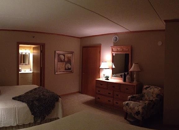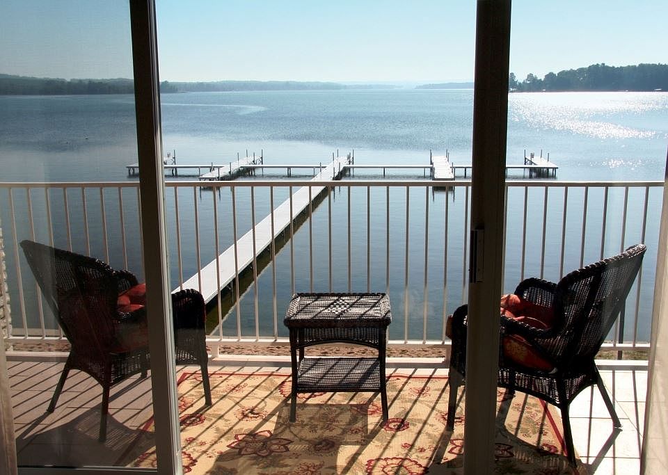Unit is located on the third floor (Top Level). It is sold furnished. It's a one large bedroom with a full bathroom attached. There is a second half bath for guests. The kitchen and living room flow together allowing you to maximize your living space. There is a wide sliding door that opens to your private deck overlooking the lake. A deeded dock slip also comes with the purchase of this unit. This unit by far has the best views. Tastefully decorated! Inland House is a GREAT year-round vacation location.