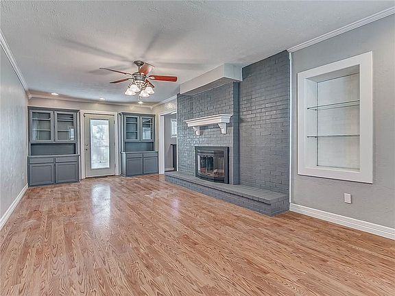 This home has extremely impressive updates and is move-in ready!! The modernized kitchen boast beautiful granite counter tops, stainless steel appliances, white subway tile back splash and an abundance of cabinets. The main living area is perfect for entertaining! It has an updated fireplace, built in cabinets and a fabulous wet bar area with new trendy grey tone paint. The laundry room has also been updated with white shiplap and trendy gorgeous tile. Both the upstairs and downstairs bathroom also have new paint. There is an oversized deck and an upstairs balcony to enjoy the beautiful Oklahoma sunsets on. Brand new roof! This home is also conveniently located close to shopping and entertainment!