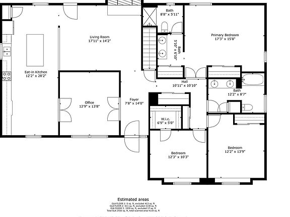 - Kitchen/Dining Room Combo, Kitchen Island, Custom Cabinetry, Pantry, Center Hall Floorplan, Walk-In Closet(s), Double Vanity