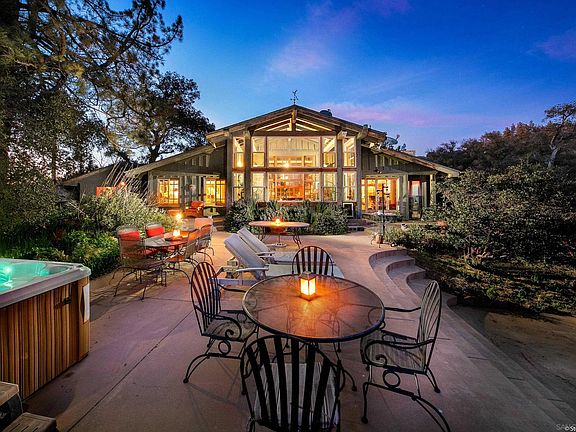 Nestled in a meadow among massive oaks, this stunning 24.78-acre jewel offers everything that makes living in Historic Julian so desirable: quiet solitude, expansive views, dark, starry skies, a seasonal pond, and an abundant orchard of grapes, apples, apricots, peaches, pears, plums, cherries, and figs. The 3+BR, 2BA home, designed by renowned architect Thomas Cox, provides abundant natural light and a modern yet warm, open-space design. An ideal equestrian property or wildlife retreat, the property is virtually off-grid with a 56-panel solar array, 4 Tesla batteries, and a high-producing well. New Hague water filtration system, new Lennox HVAC, Jacuzzi brand hot tub with a new top on the back patio, 2-car garage, separate kitchenette in bunkhouse attached to the main house, permitted, modern agricultural building with ¾ bath and office area, fully furnished treehouse and cottage playhouses; the features are too numerous to list. This property is a must-see.