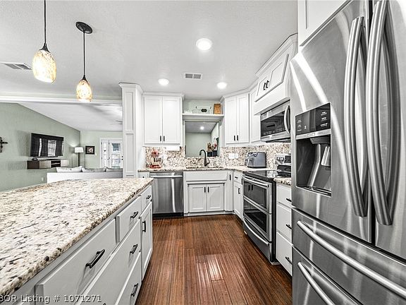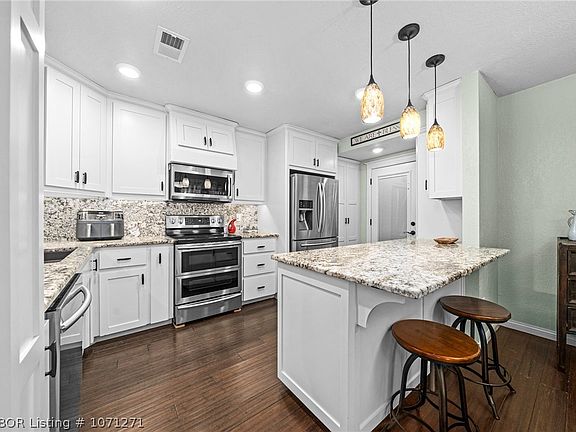 Completely remodeled home floor to ceiling (including siding/windows/roof). 3 bed/2 bath. 1511 HSF. All electric. All bamboo wood floor throughout, tile in bathrooms. Kitchen has SS appliances, granite counter tops, Breakfast bar, eat in kitchen, built in book shelves for cookbooks, extra pantry area. 12x28 Storage building in back. 30 ft long covered patio with stamped concrete. All located on a corner lot in the center of Fort Smith, minutes from restaurants & shopping.