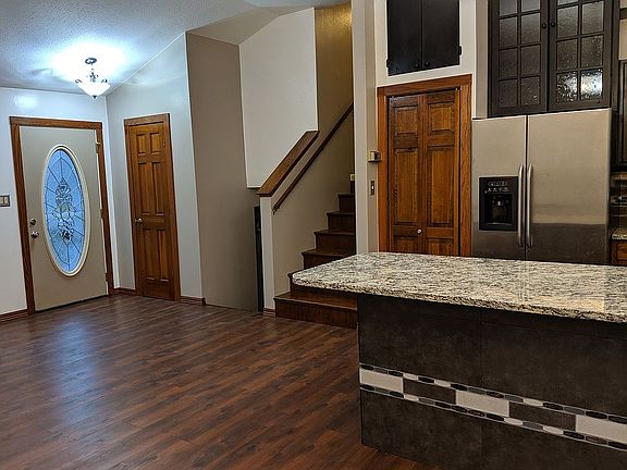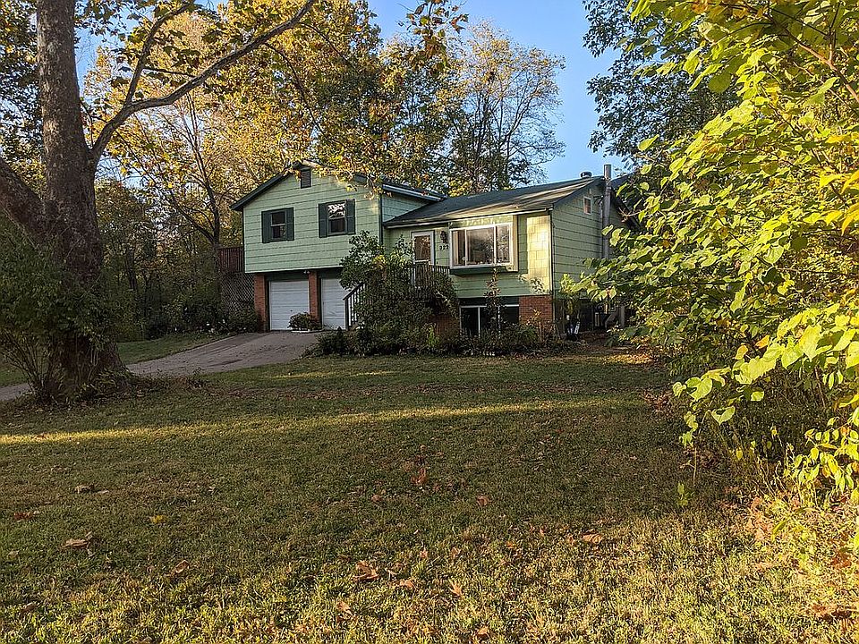 Newly remodeled home, set back from street on deep cul-de-sac lot w/mature trees. Fully equipped kitchen with range,dishwasher,side-by-side refrig, disposal. Fresh interior paint,new carpet. Open concept kitchen/dining/livingroom w/patio access. Lower level family room w/woodburning fireplace, bedroom, bathroom. Two car garage. Storage shed. Side deck overlooks large lot maintained by Boone County.