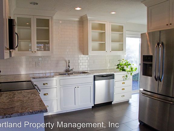 Updated Mid-Century Modern Stunner in South Tabor! - Beautifully renovated single level mid-century modern home features 3 bedroom, 1 bathroom and attached garage! Newer roof, windows, and doors, as well as rewiring & refinished hardwood floors. Renovated kitchen boasts granite counter tops, subway tile, double sink, and stainless steel appliances, including an electric flat top range, french door fridge with bottom freezer, ice and water dispenser as well as a built in microwave and dishwasher. The main living space is light and bright with a large window and non-operable decorative fireplace. Beautiful hardwood floors throughout! The bathroom is newly renovated with has double sinks and ample counter and cabinet space. Newer front loading washer and dryer! Nice back yard with patio perfect for entertaining. Attached garage. Close to many restaurants and parks! Lease Length: 9 or 18 months, negotiable Utilities Included: Trash, Recycling, and Compost. Pets: One pet only (cat or dog), 40 pound limit for dogs, $35/month, $500 additional security deposit. No smoking. Renters insurance required. If you are viewing this listing on a third party website, please visit portlandpm.com to ensure accuracy of the listing description. (RLNE3727935)