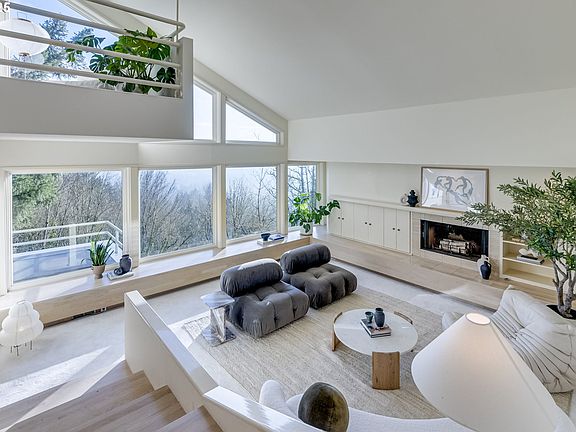 Perched gracefully on the Fairmount Loop in one of Portland’s most coveted neighborhoods, this 3 bedroom, 2.5 bath home offers the perfect fusion of sophisticated modernism and iconic 1980s style-designed by award winning architect Robert Thompson. This one-of-a-kind home is an architectural gem offering breathtaking territorial views and bold aesthetics. From the moment you step through the entryway, you’ll be greeted with clean lines and striking geometry, complemented by natural light streaming through expansive floor-to-ceiling windows. The open concept living spaces feature vaulted ceilings adding to the harmonious flow. The heart of the home is the impeccably designed kitchen, a chef’s dream featuring sleek cabinetry, premium stainless-steel appliances, and ample counter space. Opening effortlessly to the dining and living areas, the layout is perfect for entertaining or quiet evenings at home. Tucked away on the lower level, the primary suite is a retreat unto itself, featuring a luxurious en-suite bath and its own panoramic views. Two additional bedrooms and a full bath offer versatility as guest accommodations or creative endeavors. Step outside to a series of artfully designed terraced decks, providing the ultimate setting for morning coffee, evening cocktails, or hosting friends as you take in the ever-changing colors of Portland’s skyline. The surrounding natural landscape enhances the property’s wild beauty while providing a quiet escape from the world. This special home offers unparalleled access to verdant trails and parks, as well as proximity to downtown Portland’s dynamic cultural and culinary scene. Experience this architectural treasure for yourself by scheduling a private showing today. [Home Energy Score = 3. HES Report at https://rpt.greenbuildingregistry.com/hes/OR10235335]