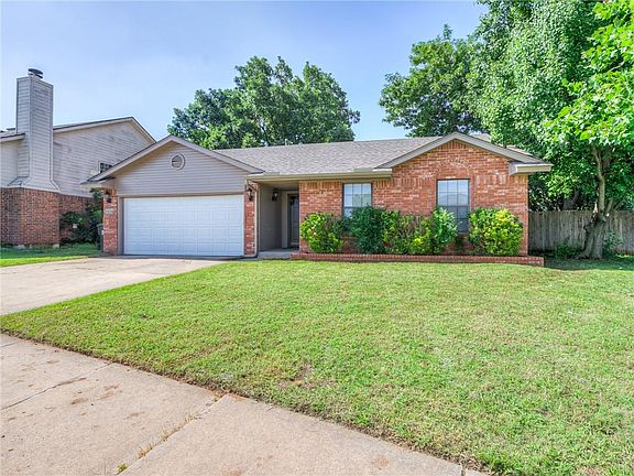 Come take advantage of all the updates, spacious yard & tall ceilings this west Norman charmer has to offer. With light flooring, granite counters, ample cabinet space & stately fireplace, this house packs a big punch for the price. Located in a small neighborhood with access to playgrounds & larger park, you’ll love living in Prairie Creek. Don’t miss the opportunity to be close to I35, shopping & great restaurants just around the corner! Mounted TV can remain in living room.