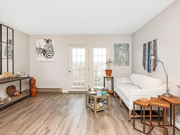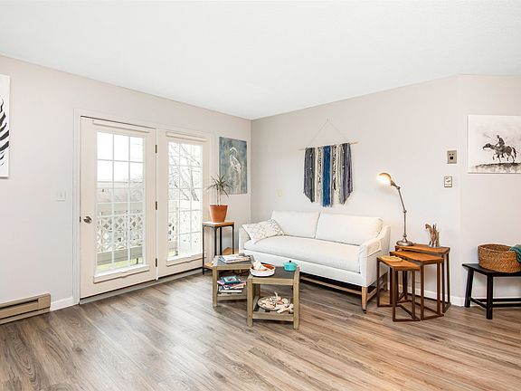 Wonderful opportunity at The Terraces located in the heart of Shelburne village. This 55+ community with seven acres of common land is sought after for its extensive amenities. This second-floor end unit is an easy walk up and features a motorized stair lift should it be needed. The home is flooded with natural light, and you are sure to love the french doors out onto a private balcony with a view of beautiful sunrises. Upon entry, a newly updated kitchen featuring updated appliances, quartz countertops, and beautiful new cabinetry can be found. A breakfast bar overlooks the kitchen, perfect for visiting while you cook. Past the kitchen is a large, light filled living room with plenty of space to entertain. There are two large bedrooms with plenty of closet space, a full bath, & a large storage room rounds out the unit. New vinyl floors have been laid, the kitchen was recently updated, and across the street, you'll find the Audubon Building where you can enjoy a midday meal served M-F. Enjoy the company of others in the community living room, borrow a book from the library, or take advantage of the craft or exercise rooms. There's a hairdresser on site and a handy man can assist you with minor repairs. A community van offers service to a grocery store and Shelburne Village every week. Activities abound - yoga, bingo, bridge, knitting, book groups, and day trips.There are laundry facilities located in each building. Beautiful home in highly sought after community.
